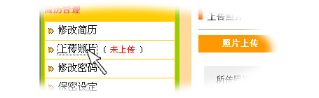 注冊(cè)成功后系統(tǒng)會(huì)自動(dòng)跳轉(zhuǎn)到個(gè)人管理頁(yè)面,點(diǎn)擊“上傳照片”,上傳不大于100KB的照片,這樣更容易讓招聘企業(yè)青睞;
